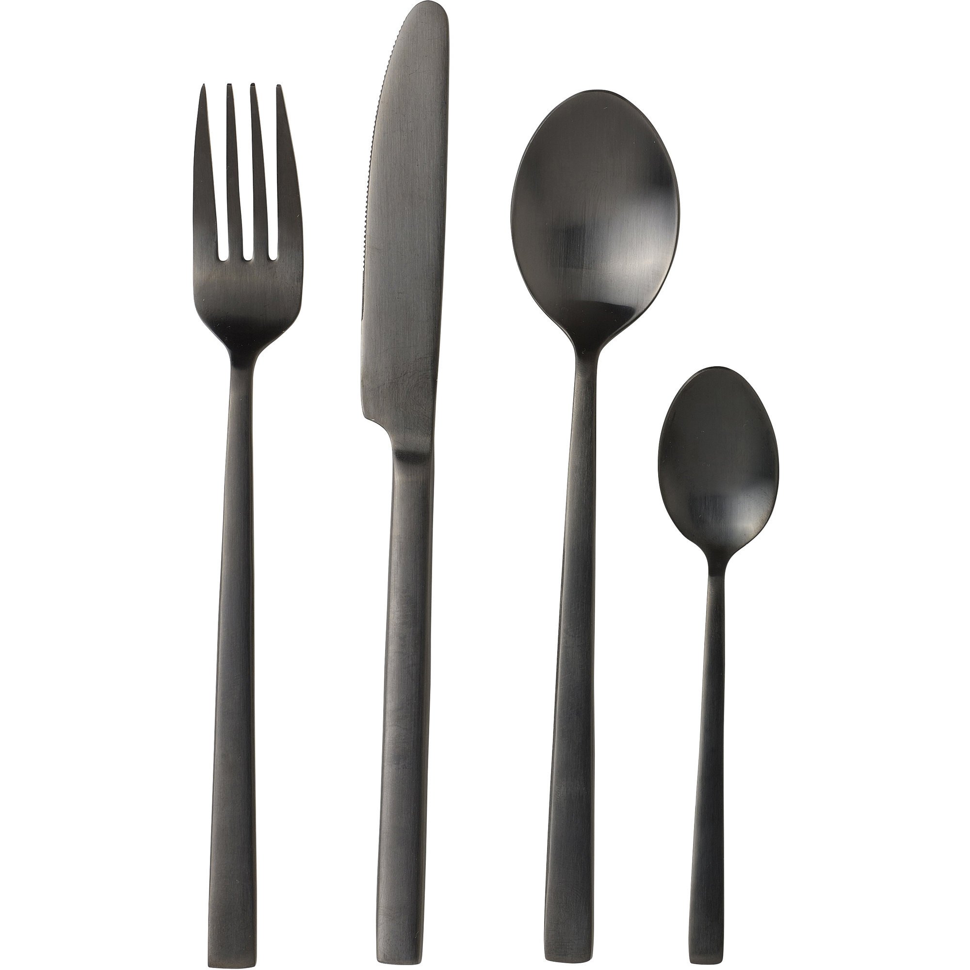 4 knive, 4 gafler, 4 skeer og 4 teskeeer. Du får det hele med bestiksættet i 16 dele fra Bitz.Â