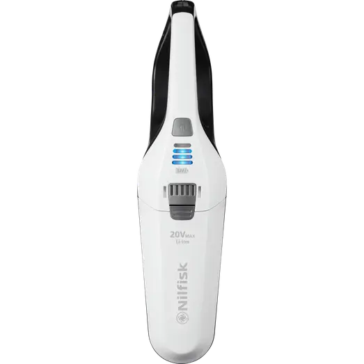 Lysindikatoren på Nilfisk Quick White håndstøvsugeren viser når støvsugeren oplader og hvilken batteristand den har ved brug. Den har op til 12 minutters driftstid ved fuld oplad