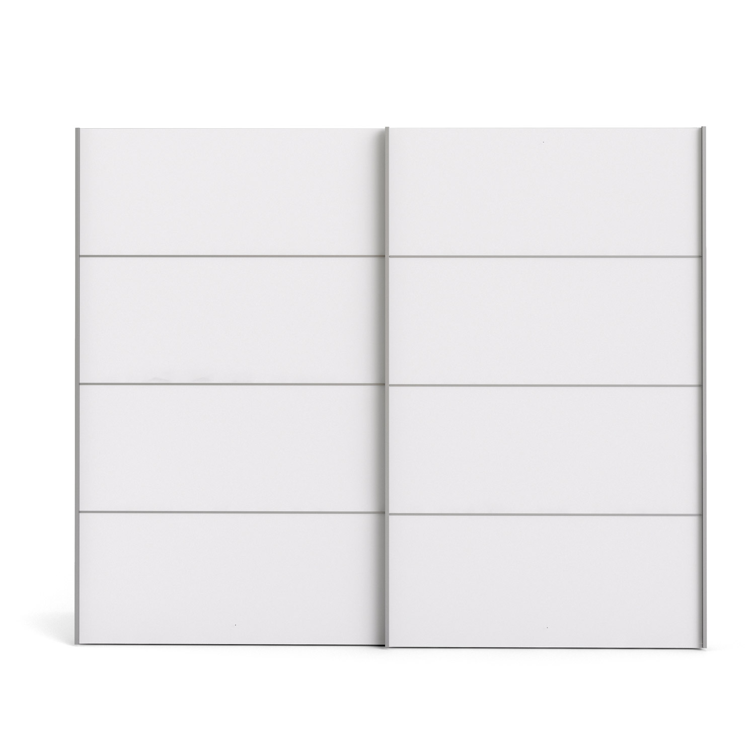 Moderne og klassisk garderobeskab fra Tvilums Verona kollektion. Dette skab er den brede udgave af Verona skabene og kommer med seks eksta medfølgende hylder. Selve skabet kommer i en stilren hvid farve, der komplimenteres af de to skydedørslåger i samme